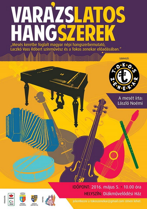Gyerekekhez viszi közel a népzenét, a népi hangszereket a Tokos zenekar. A Varázslatos hangszerek interaktív mese, így a gyermekek is részt vehetnek az előadásban, amelyet 2016-ban mutattak be Kolozsváron, a Diákművelődési Ház nagytermében, az Apáczai Csere János Elméleti Líceum, a Báthory István Elméleti Líceum és a János Zsigmond Unitárius Kollégium rendezvénytermeiben, a sepsiszentgyörgyi Székely Mikó Kollégiumban, valamint a Double Rise Fesztivál Folkudvarában. A mese László Noémi költő fantáziája alapján született és egy világutazó juhászgyerekről szól, akinek szerepét Laczkó Vass Róbert, a Kolozsvári Állami Magyar Színház művésze alakította. Ő jegyzi az egyes hangszerekhez tartozó négysoros rigmusokat is.